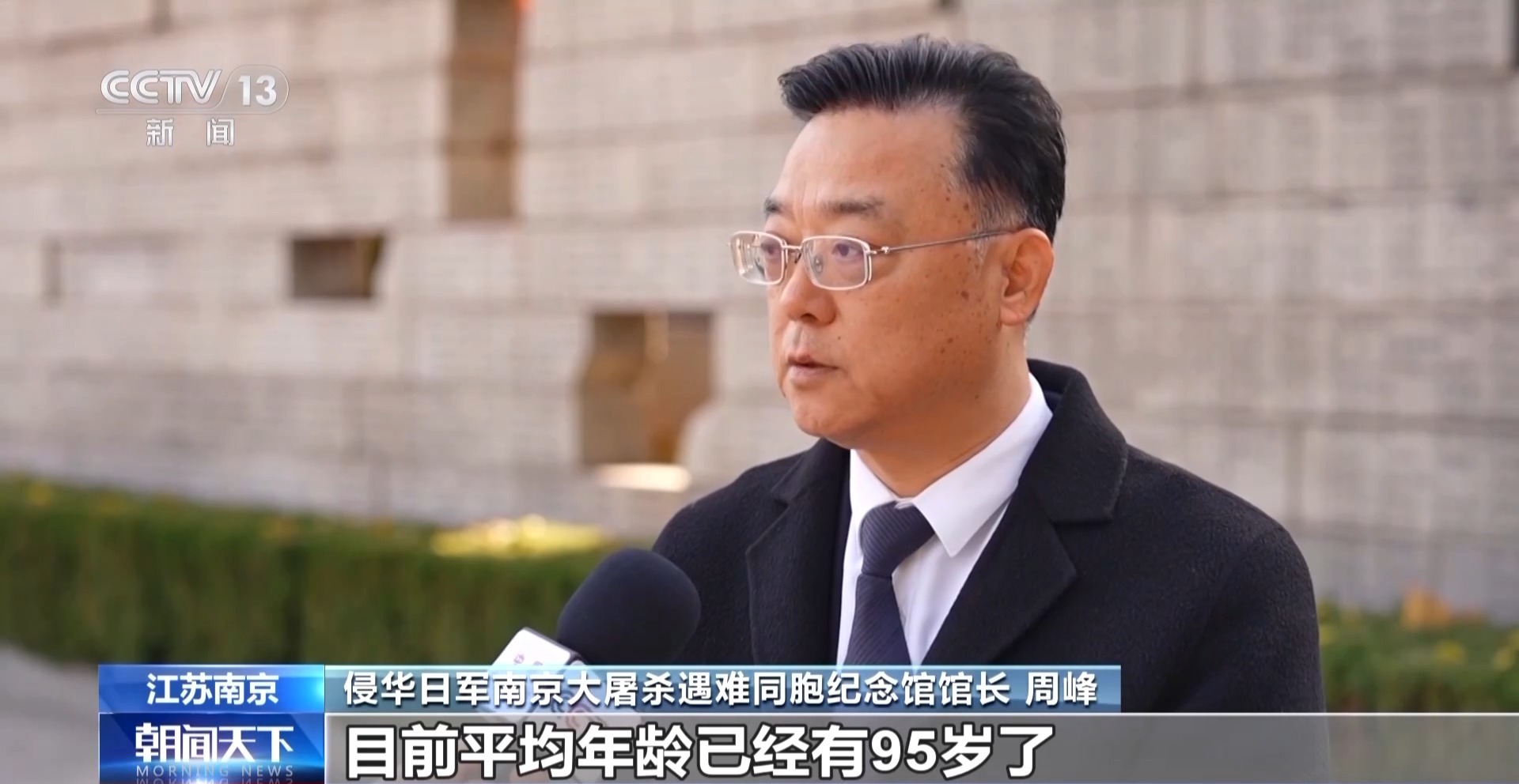 侵华日军南京大屠杀遇难同胞纪念馆馆长周峰:目前登记的幸存者有24人。如今平均年龄为95岁,最年长的为102岁。我们为这些幸存者提供一对一的保护并照顾他们的生活。我们还动员医院、街道、社区来关心他们。