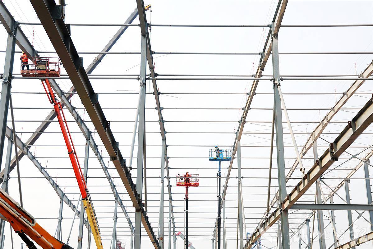 12月11日,在宜昌猇亭区远景动力智能锂电池生产基地施工现场,工人们在24米高处安装标准厂房结构。目前,中建二局600多名建设者正在努力了解施工进度,帮助公司尽快投产取得成效。据了解,该项目规划年产能40GWH,覆盖电极、电芯、电池组等锂电池全产业链,将生产最新一代700+AH储能电池产品。达产后,年产值将突破100亿元。今年10月,该项目从签约破土动工仅历时18天,再次刷新项目主体施工“宜昌速度”新纪录。 。 12月11日,施工现场在宜昌市猇亭区远景动力智能锂电池生产基地现场,工人们在24米高的地方安装标准厂房结构。 12月11日,在宜昌猇亭区远景动力智能锂电池生产基地施工现场,工人们在24米高处安装标准厂房结构。